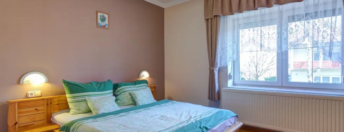 Egész éven át jól felszerelt, külön bejáratú apartmanokkal állnak a vendégek rendelkezésére. A földszinti apartman 2 fő részére egy szobával, és az első emeleti apartman egy illetve kettő szobával: 2-3-4 személynek biztosítanak szálláslehetőséget. Az apartmanház kizárólag nemdohányzó apartmanokkal rendelkezik. Az erkélyeken kerti bútorok, napernyő lehetőség áll rendelkezésre.