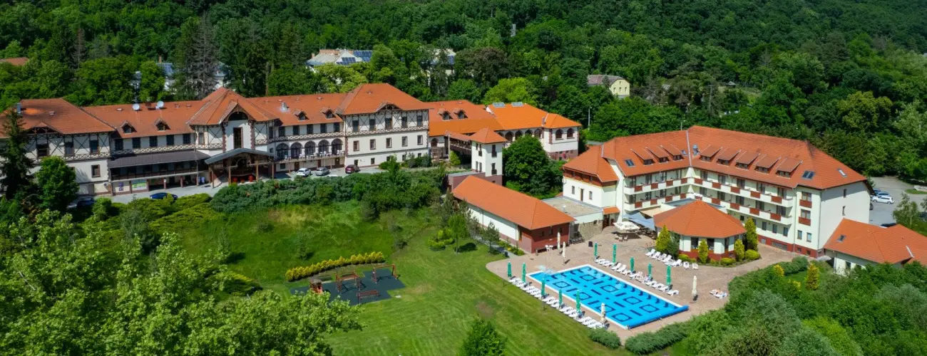 A szálloda mind a múlt emlékeit, mind a modern korok vívmányait magában foglalja: őrzi az 1893-as Ybl Miklós által tervezett Károlyi kastély építészeti jegyeit, míg hangulatában tükrözi a mai kor eleganciáját. 2002 óta folyamatos megújulásban részesült, míg 2008-ra az új épületszárny megnyitásával elérte a mostani formáját, hogy mindenki számára vonzó, széleskörű szolgáltatási palettát kínálhasson. Mindkét épületben ingyenes Wi-Fi elérhetőség biztosított. A történelmi hangulatú Erzsébet-szárnyban 41 darab igényesen berendezett szoba áll a vendégek rendelkezésére: 24 darab kétágyas, 10 darab kihúzható kanapéval bővített szoba; 2 darab két légterű apartman és 4 darab galériás apartman várja a párokat, családokat, céges rendezvények résztvevőt. A szobák parkra nézők vagy utcafrontiak; nemdohányzóak; földszintiek vagy emeleten elhelyezkedők (az Erzsébet-szárnyban nincs lift), minden esetben színes televízióval, telefonnal, mini hűtőszekrénnyel, széffel felszereltek, míg a fürdőszobák sarokkáddal, normál káddal vagy zuhanyzóval ellátottak. Az apartmanok dupla alapterülete, parki panorámája, nagy képernyős tévéje, normál kádas fürdőszobája emeltebb komfortfokozatot nyújt. Az új Zsuzsanna-szárnyban 58 darab modern szobát kínálnak: 27 darab kétágyast, 25 darab szimpla pótággyal bővített szobát; 4 darab apartmant és 2 darab családi szobát. A szobák a másik szárnyra, főútra vagy parkra nyíló panorámával rendelkeznek; nemdohányzók; emeletiek; részben erkélyesek; színes televízióval, telefonnal, mini hűtőszekrénnyel és széffel felszereltek, míg a fürdőszobái zuhanyzósak. Az apartmanok és családi szobák két légterű befogadóképessége elsősorban családok részére nyújt kényelmes elhelyezést. A szálloda minden szobája légkondicionált. A mai kor igényeinek megfelelően a régi uszodai-részleg mellett egy új wellness részleg került megvalósításra térítésmentes szolgáltatásokkal. Az Erzsébet-szárnyban egy 14 x 7 méteres fedett úszómedence, ülőmedence, infra szauna, gőzkabin, kondicionálóterem található, a Zsuzsanna-szárnyban pedig élménymedence, pezsgőfürdő, finn szauna, fényterápiás sókabin és a nyaranta üzemelő 10 x 20 méteres kültéri medence, ezeken felül térítés ellenében svéd- és aromaterápiás masszázs is elérhető. A Mofetta (CO2 gyógygáz) kezelés mellett az intézményben számos kiegészítő gyógyászati kezelésen vehetnek részt a látogatók. Az aktív szórakozás hívei megtalálhatják elfoglaltságukat a 4 sávos bowling-pályán és a biliárd teremben. Az asztali tenisz, tollaslabda, kerékpár kölcsönzési lehetőségek is tovább bővítik az aktív kikapcsolódási kínálatot, a szállodát környező erdőkben pedig kellemes sétákat tehetnek a vendégek.