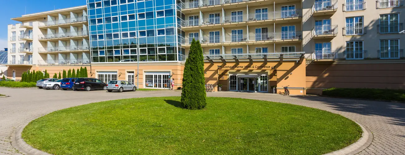 A szobák többségéhez erkély tartozik, amely kellemes kilátást kínál a fürdőre, illetve a környező tájakra. A családoknak nagy légterű családi szobák állnak rendelkezésre. Nagyobb családok a két légterű családi szobák előnyét is élvezhetik. A Romantikus szobákat kifejezetten párok részére tervezték, elegáns, kádas fürdőszobákkal. Az egész évben működő Szentgotthárd Spa&Wellness komplex szolgáltatást, tökéletes kikapcsolódást és regenerálódást nyújt az ideérkező vendégek számára. A fürdő egyedülálló mediterrán hangulatát a pálmafák, egzotikus növények és a velük szoros összhangban kialakított természetes kőburkolatok biztosítják. Az élményfürdő üvegkupolája alatt a januári télben is mediterrán tavasz van! A Gotthard Therme Hotel színvonalas helyszínt kínál konferenciák, workshopok, tréningek, esküvők, családi rendezvények, csapatépítő programok lebonyolítására 10 főtől - 280 főig. A szálloda konyhája sikert garantál bármely típusú rendezvényhez, a termálfürdő pedig a rendezvény élményeihez ad kellő kiegészítést. A termek 50 négyzetmétertől 380 négyzetméterig, a konferenciaszinten tágas előterekkel és saját bárral állnak rendelkezésre, így a kínálatban biztosan megtalálja az Önnek legalkalmasabb helyszínt. Valamennyi terem légkondicionált és modern audiovizuális technikával felszerelt. A hatalmas parknak köszönhetően a szakmai program mellett a szabadidő aktív és vidám eltöltésére is számos lehetőséget kínálnak: csapatépítő programok, szórakoztató műsorok vagy zenés estek is gondoskodnak a felejthetetlen élményről. Rugalmas konferenciaszervező csapat és professzionális szállodai szolgáltatások garantálják a sikeres rendezvényt!