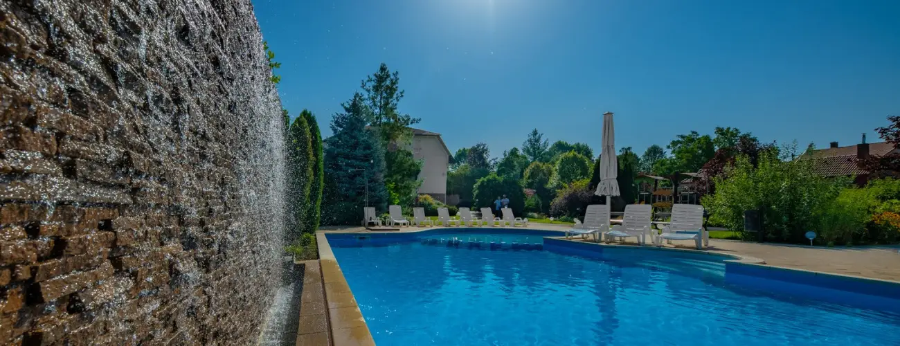 fedett úszómedence • szabadtéri úszómedence • szauna • fodrászat • masszázs • gőzfürdő • infraszauna • finnszauna • napozóterasz • Beltéri medence • Kültéri medence