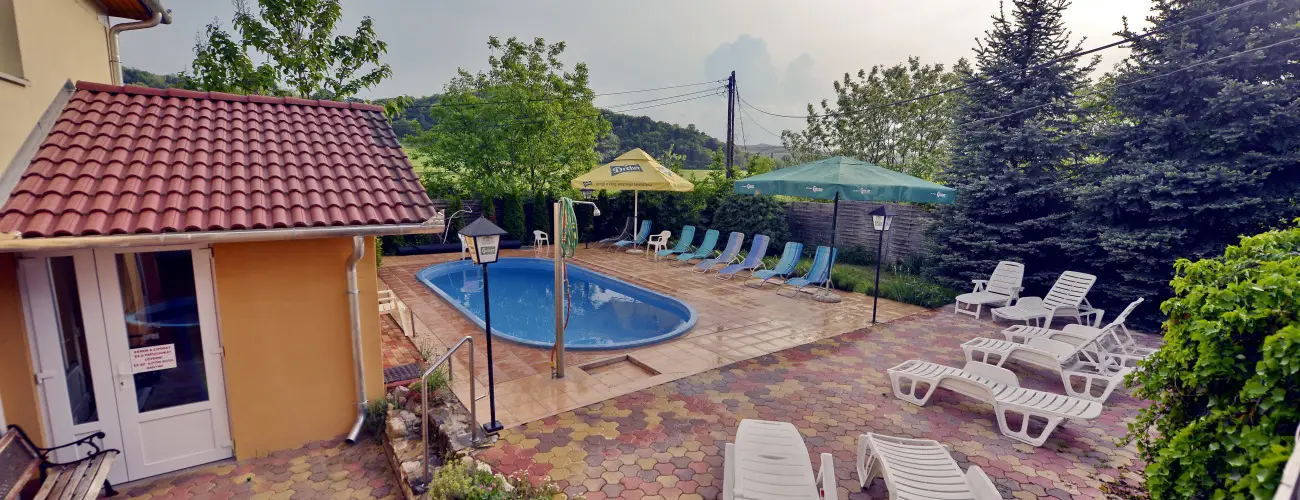 szabadtéri úszómedence • pezsgőfürdő • infraszauna • napozóterasz • kültéri medence